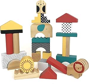 Bausteine Set Tiere Bauklotze Holzspielzeug Fur Kinder Ab 18 Monate Amazon De Spielzeug